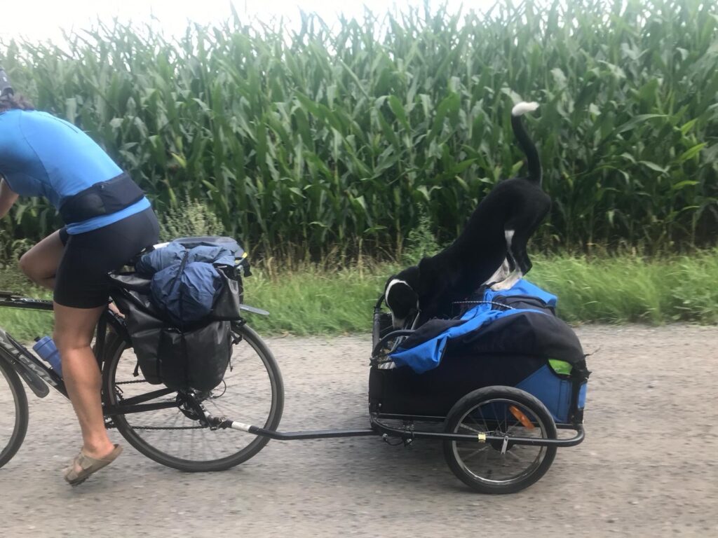 - sleeping and eating at hosts’ houses (often found via the Warmshowers.org community)