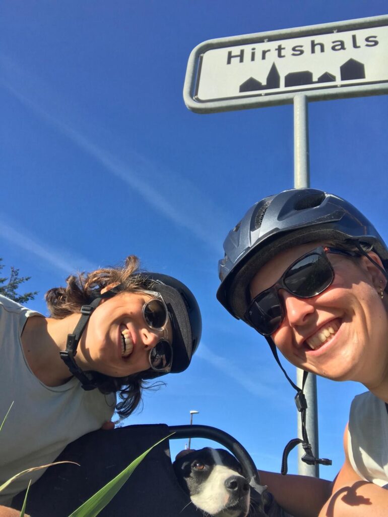 - switching bikes to keep the rhythm (my bike with the carriage and the dog was quite heavy)