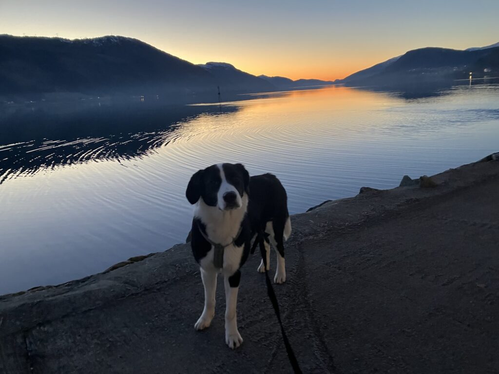 I had accepted an exciting one-year circus program in Nordfjordeid, a remote town on a Norwegian fjord. And the residential college had very kindly agreed I could bring my puppy- an active, loving 5 month old border collie. Called Arfy. Who I would never consider leaving behind.