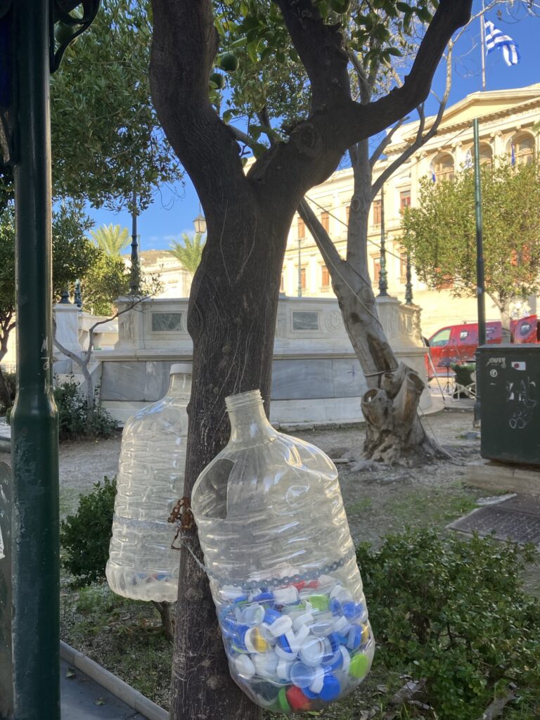 Many shops collect difficult to recycle items like batteries, light bulbs and coffee pods. Or you could start your own community collection. Like this great neighbourhood idea for collecting bottle tops for melting down and repurposing into new products like pens or building materials.
