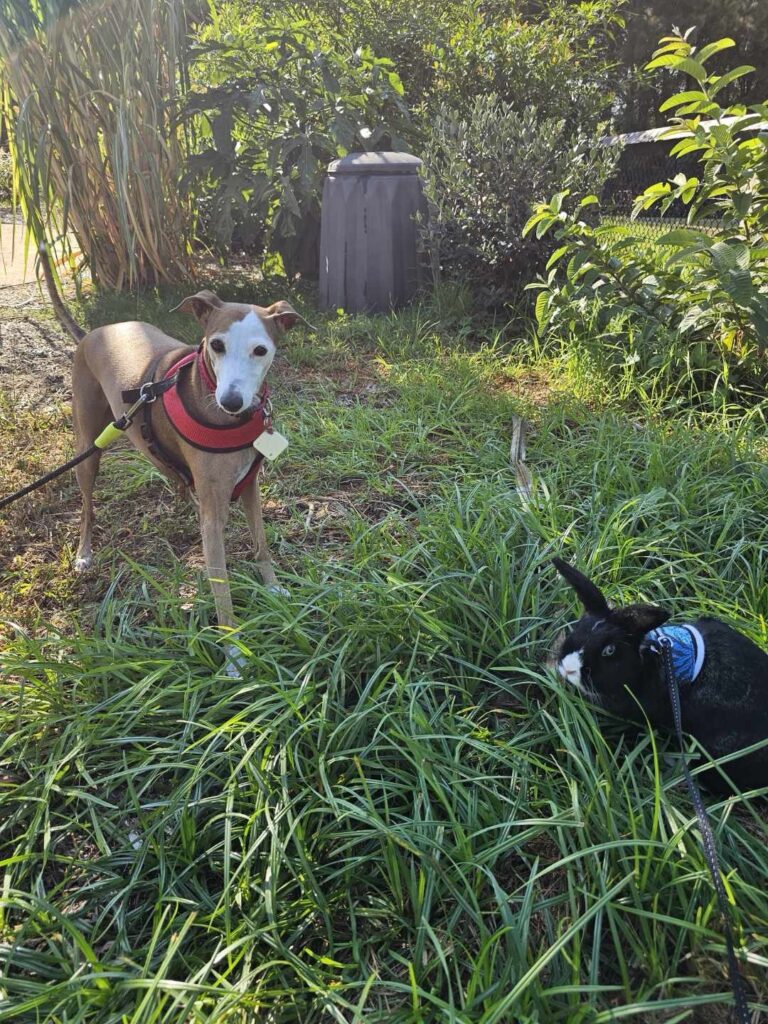 Composting can be as simple and unobtrusive as this bin. By the way, pet rabbit droppings are excellent for compost because they’re a “cold” manure, rich in nitrogen, that won’t burn plants, and can be added with bedding like hay and paper/pellets to improve soil structure, drainage, and moisture retention. We don’t put poo from cats and dogs into our compost, but some do.